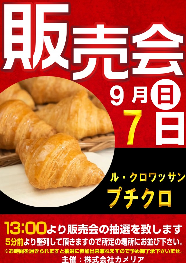 9月7日(日)【ル・クロワッサンプチクロ販売会開催予定】
