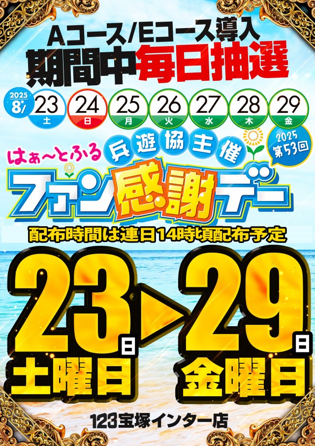 【兵遊協主催はぁ~とふるファン感謝デー】連日クジ配布予定🌻