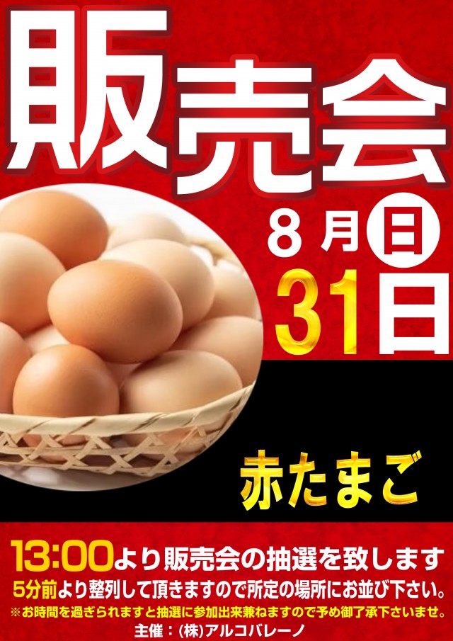 8月31日(日)【赤たまご販売会開催予定】🌰🌰