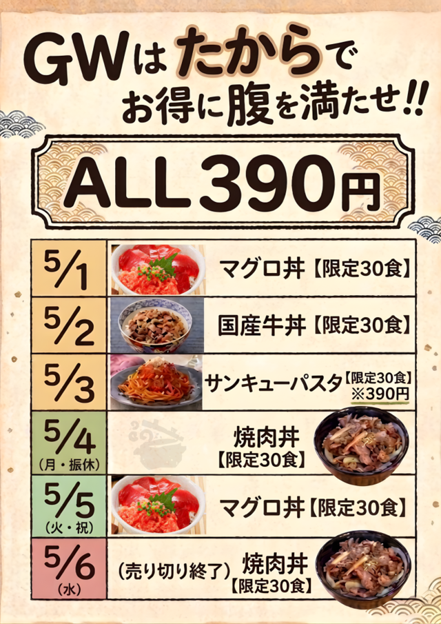 新台入替前日のみ、お休みとさせて頂きます |