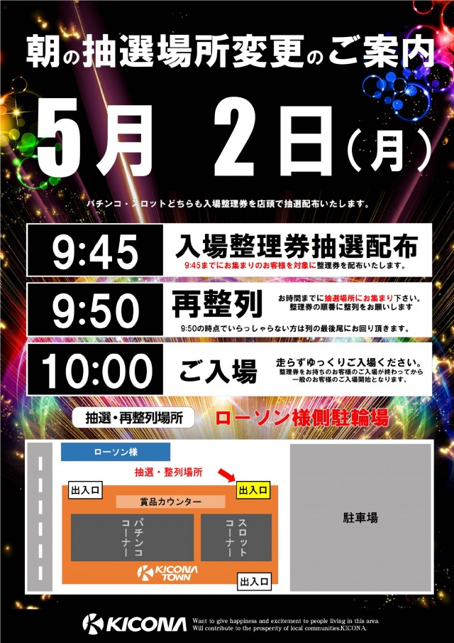 明日抽選場所変更のお知らせ☆