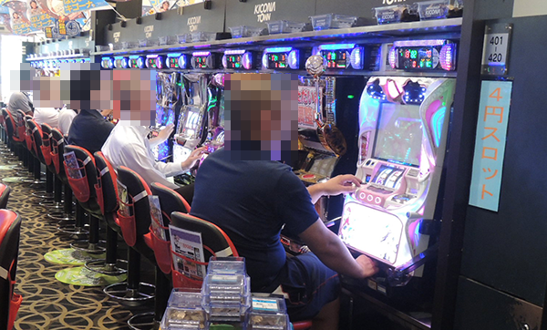 夕方頃の4円パチンコにおいて、注目を受けていたのが海物語シリーズ。プレイヤーたちのイキイキとした表情からは、しっかりと楽しめていることもうかがえた。