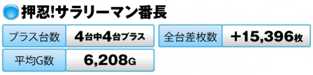 4台すべてがプラスで全台差枚数は+15,396枚を記録。