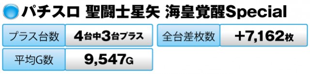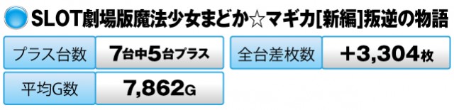 4台中3台がプラスで全台差枚数は+7,162枚だった。