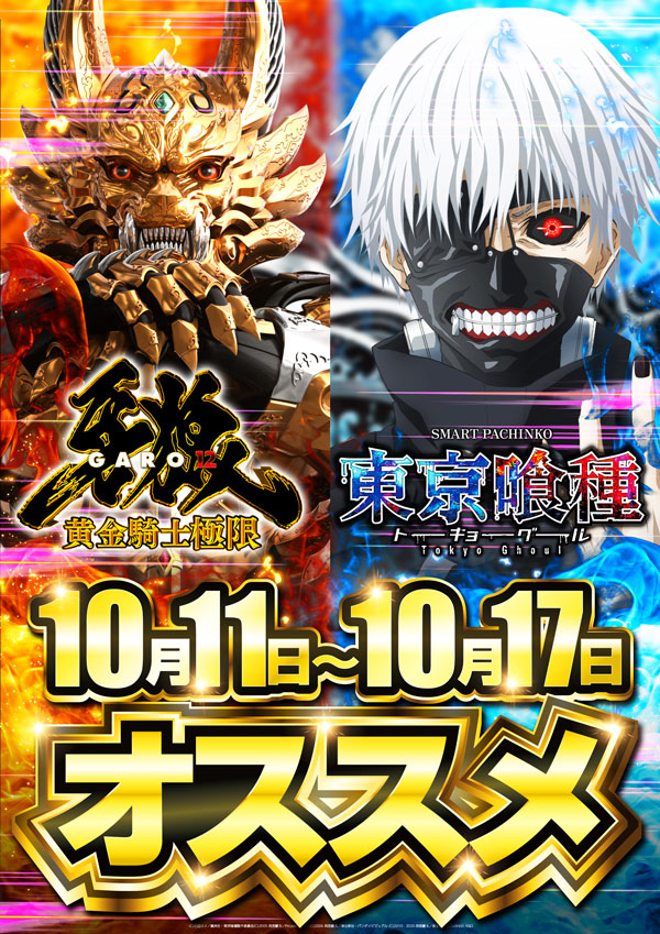 牙狼12・東京喰種おススメ!更に沖海6・新鬼武者3導入済!