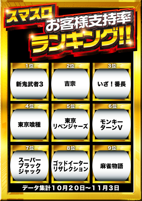本日スマスロランキング発表!更に東京喰種・からサーがおススメ