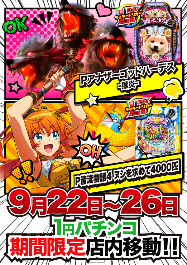 9月25日もGOGO!最新台導入!更に期間限定店内移動実施中