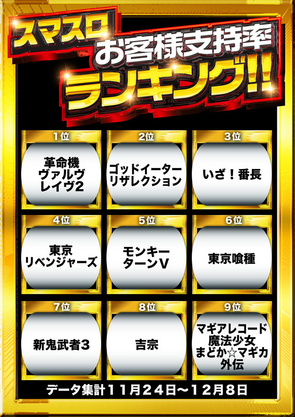 本日スマスロランキング発表!北斗11暴凶星などなど導入済み!