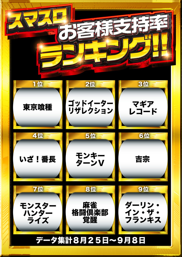 明日13日【スマスロランキング】発表!更に最新台導入済み!
