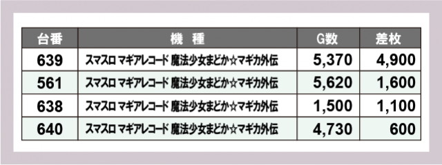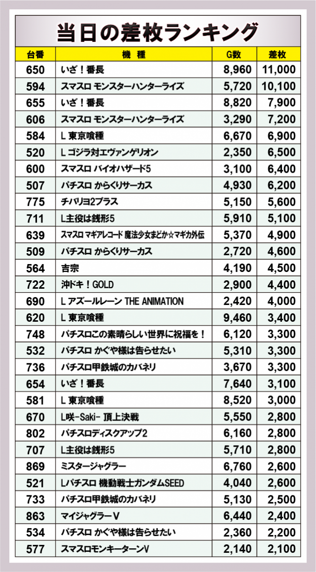 ※差枚数順に掲載しています