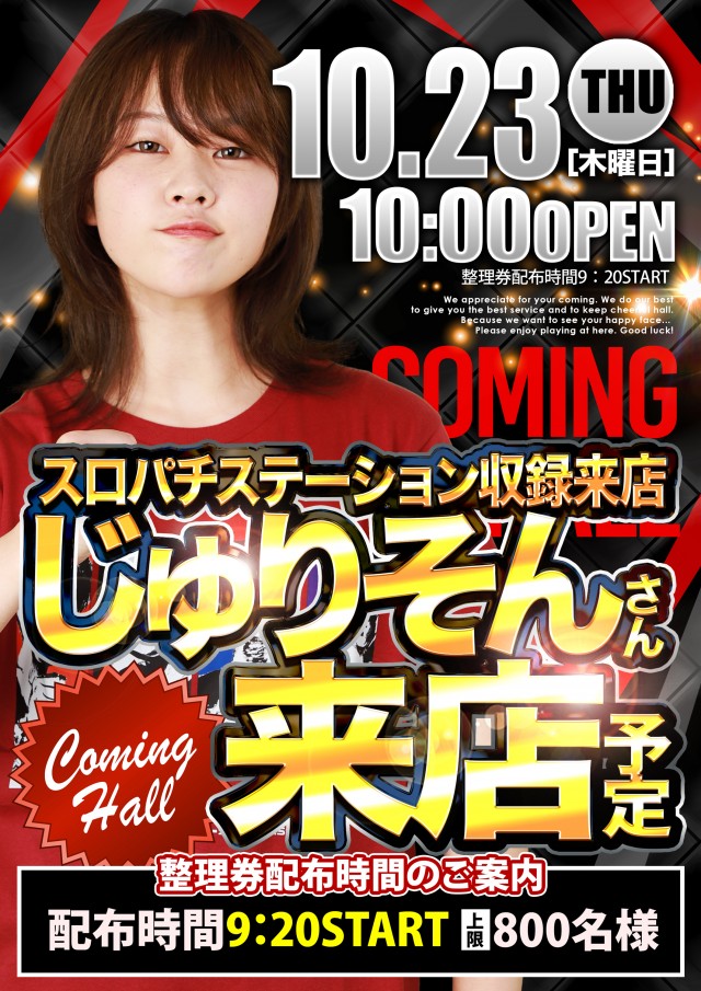 10/23【木】じゅりそんさん来店予定😍整理券配布時間変更