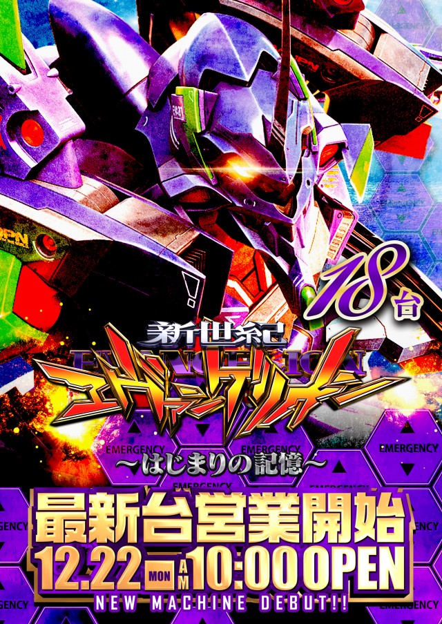 12/22日【月】最新台営業開始☆最新エヴァ18台稼働開始★