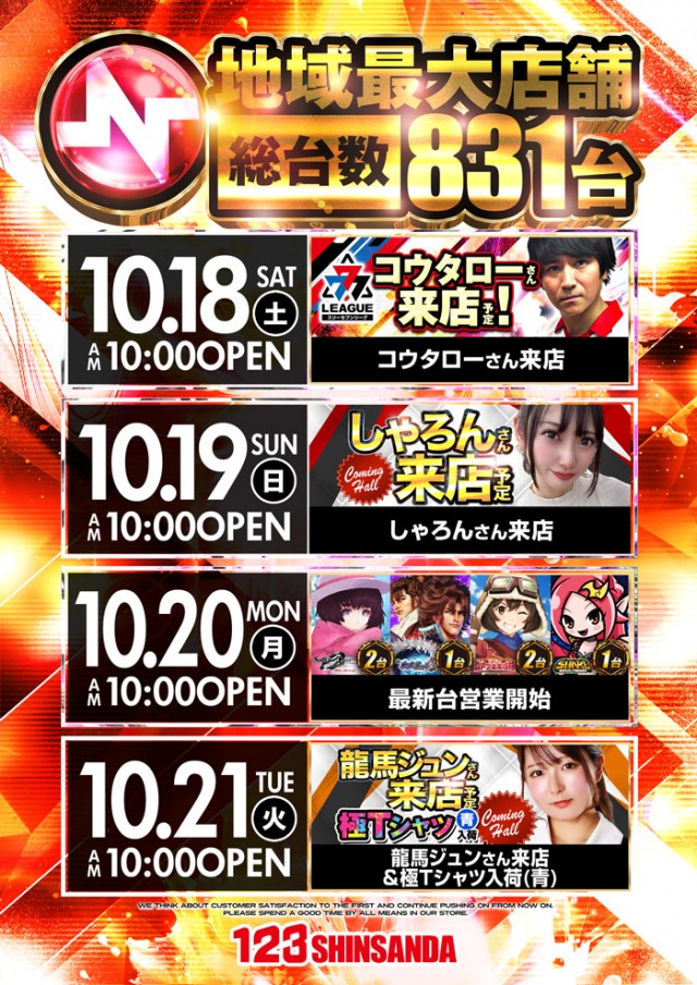 10月19日【日】💪しゃろんさん来店予定👍