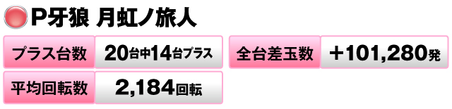 20台中14台=7割がプラス、平均回転数2,000回転強と好稼働、さらに全台の差玉数は驚異の100,000発以上達成!