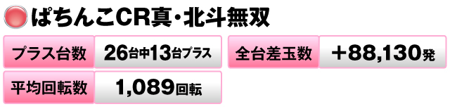 全体の4割がプラス、平均回転数は少なかったが、さらに全台差玉数は70,000発弱をマークした。