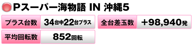 34台と大量設置ながら22台と約3分の2がプラス、平均回転数は少なかったが、さらに全台の差玉数は90,000発超達成!