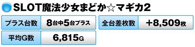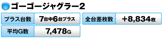 高い稼働率が見られた『ゴーゴージャグラー2』と『SLOT魔法少女まどか☆マギカ2』はプラス台数が多かった。前者は平均消化7,000G超え!