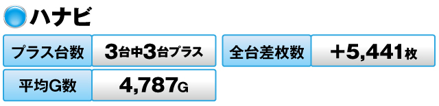 『パチスロディスクアップ』は全台トータルでプラス6,000枚超、『ハナビ』は全台がプラス、同店で最大台数の『マイジャグラーⅣ』は総台数の半数近くがプラスと、それぞれの機種が見せ場を作った。