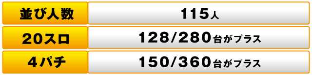 同店は20スロだけだが、280台中128台と半数近くがプラス!
