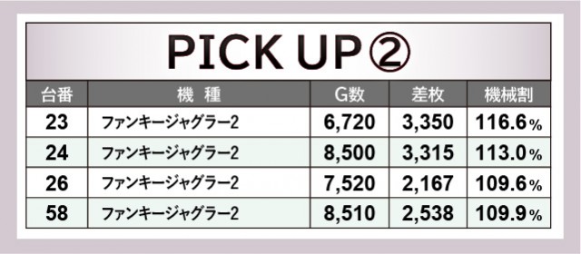 『マイジャグラーV』『ファンキージャグラー2』では、消化された回転数と差枚数が比例するような展開が多く見られた。特に後者は2~3千枚OVERが発生する熱気が放たれ、とても打ちごたえのある状況にファンは笑顔を覗かせていたはずだ。コンスタントに輝くGOGOランプによって、この上ない遊技体験を味わえただろう。