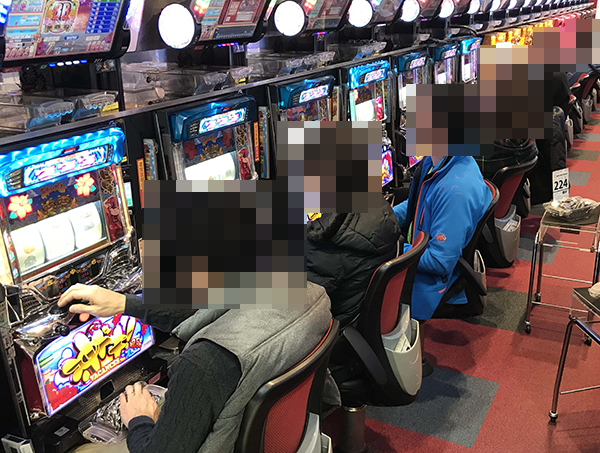 多くのプレイヤーがうれしそうに遊技をおこなっている「123新三田店」には、素敵なシーンが広がっていた。