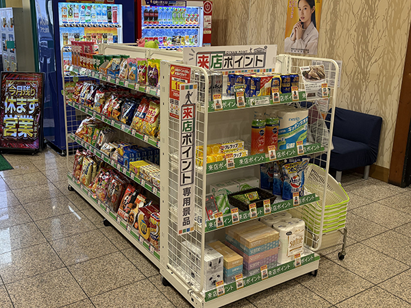 景品コーナーにはたくさんのお菓子や来店ポイントで交換できる日用品が用意されており、プレイヤーから好評だった。