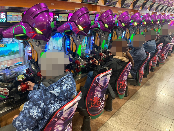 16時ごろの4円パチンコでは「P大海物語5」や「新世紀エヴァンゲリオン〜未来への咆哮〜」が人気で、プレイヤーの嬉しそうな様子を多数確認している。