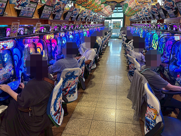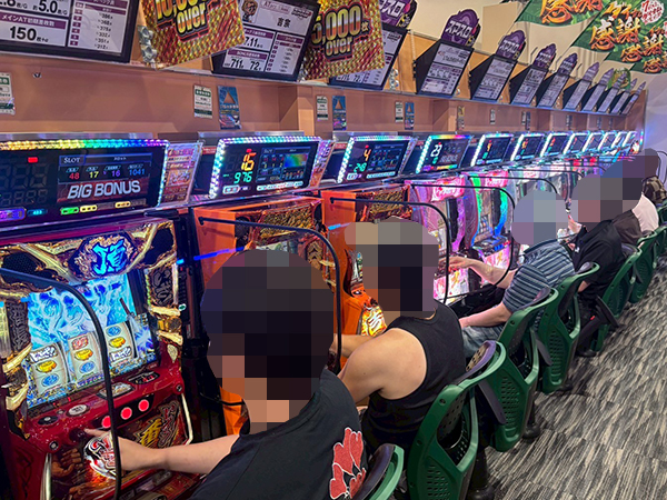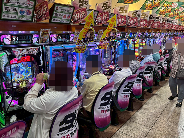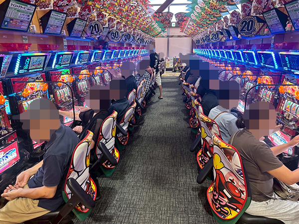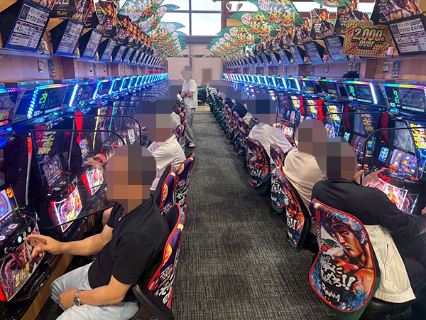 取材時は既に多くのプレイヤーであふれており、パチンコ・パチスロを問わず楽しげな表情でいっぱいだった。