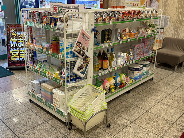 景品コーナーにはお酒類・インスタント食品・来店ポイント交換景品など多彩なアイテムが揃っており、プレイヤーたちの目を引いていた。