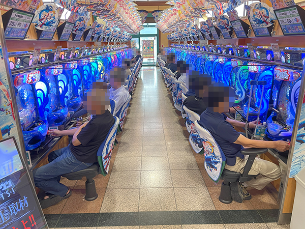 14時ごろの4円パチンコを見てみると「P大海物語5」が高稼働。プレイヤーの嬉しそうな表情を多数確認している。