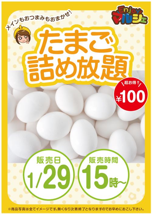 本日、1月29日(日)、『たまご詰め放題』★★開催★★