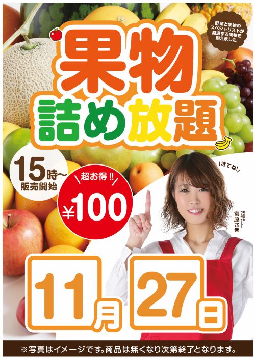 明日、11月27日(日)、『果物詰め放題』★★開催予定★★