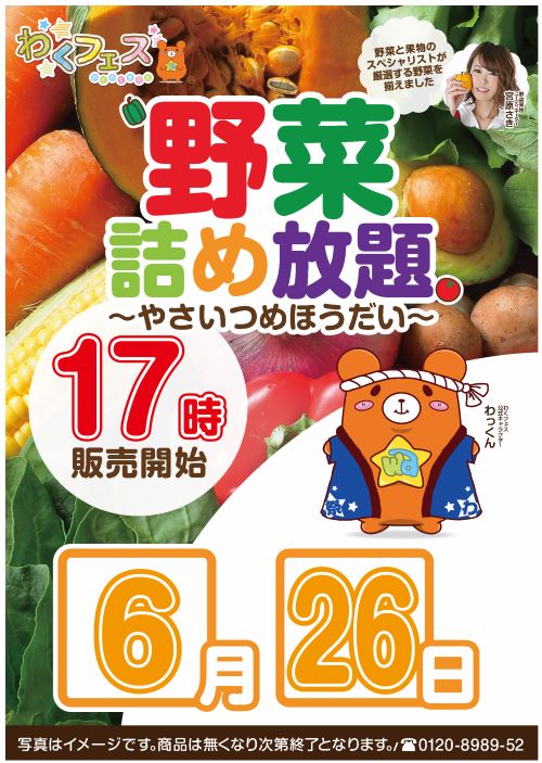 本日、6月26日(日)、『野菜詰め放題』★★開催★★