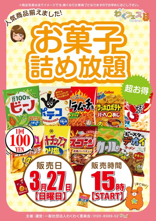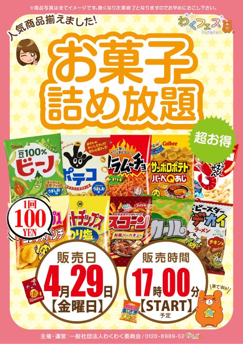 明日、4月29日 (金)17時より『お菓子詰め放題』開催!!