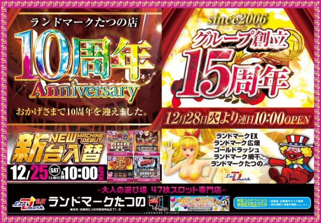 たつの市12月25日(土)新台入替&来店10時OPEN!!※入場整理券の抽選あります。最 新 情 報