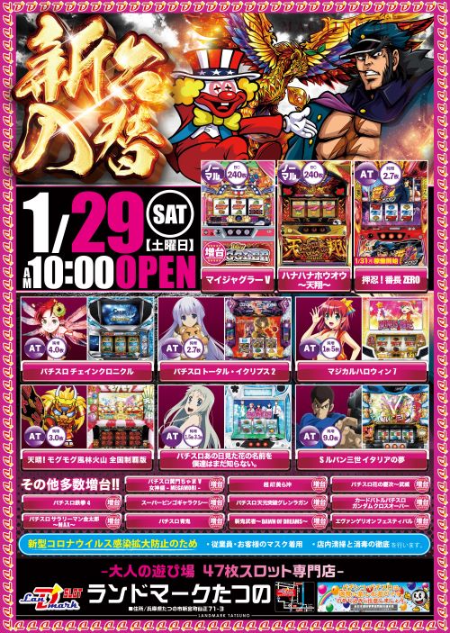 1月29日(土)☆★新台入替★☆ 10時OPEN❗❗❗