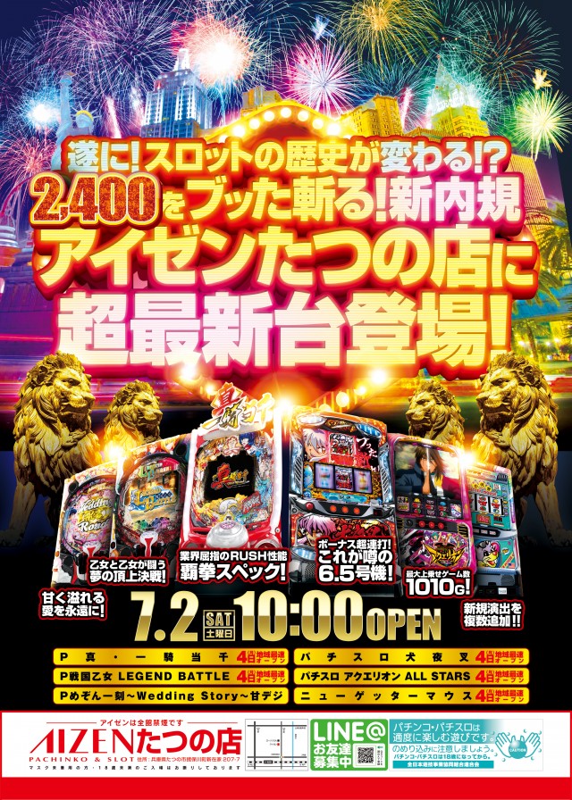 基本年中無休。ただし、新台入替え前日はお休みを頂いております。 |