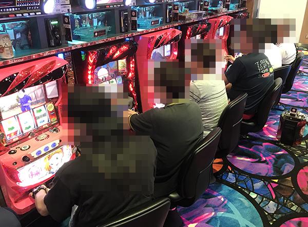 午後の12.5円パチスロにおいては、「Re:ゼロから始める異世界生活」や「押忍!番長3」などが満席。パフォーマンスを披露しているプレイヤーが並んでいる光景は、見応えがあった。