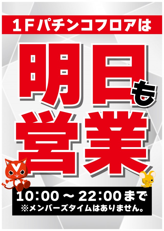 【1Fパチンコフロア】AM10時OPEN!