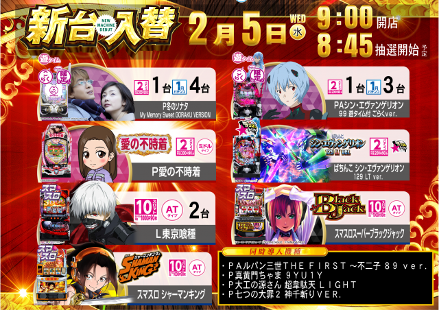 明日_新台入替!PB機エヴァ/冬ソナ含む、全11機種導入!