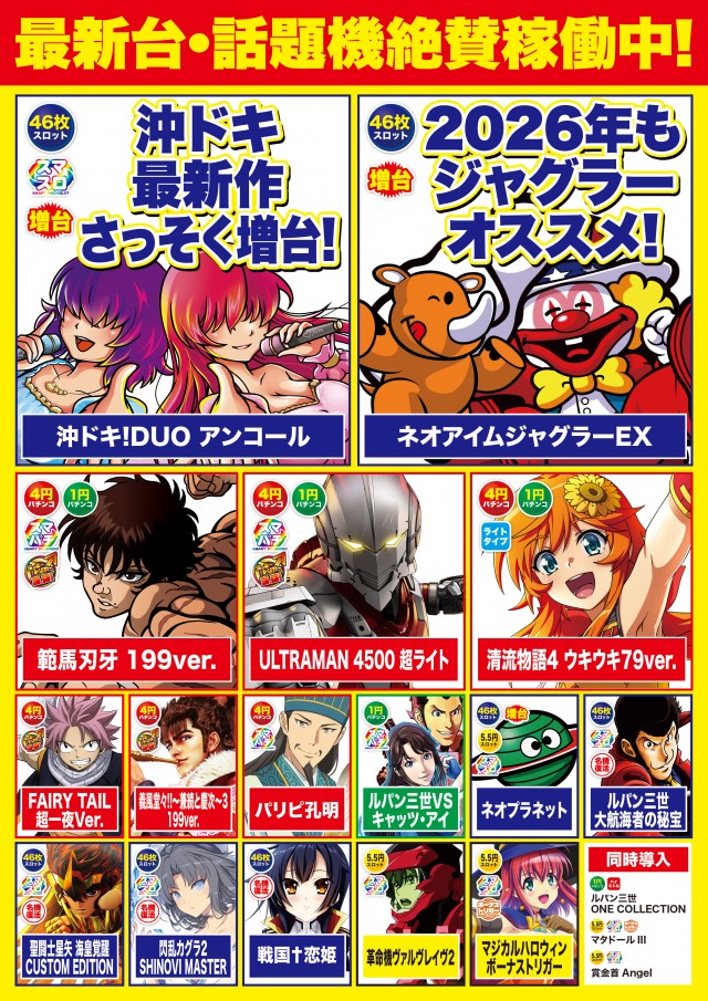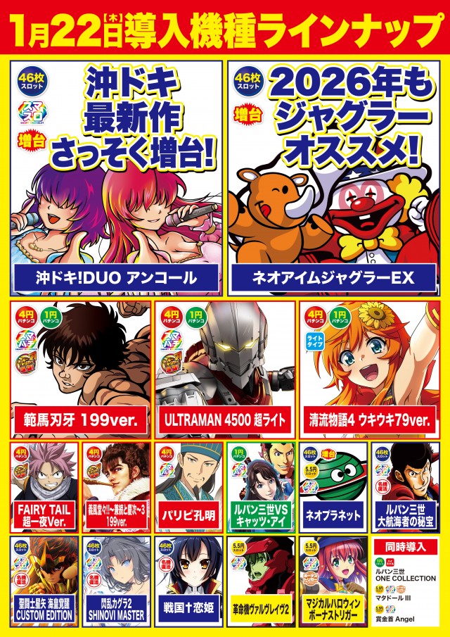 1月22日(木)新装開店!沖ドキ最新作早くも増台!