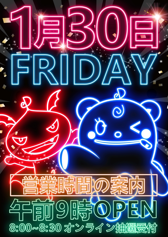 1/30(金)感謝継続!明日"も"午前9時開店!