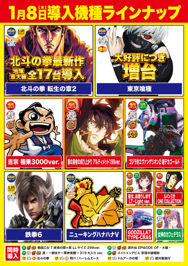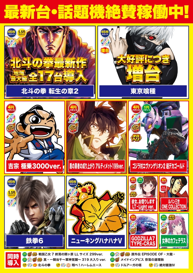 4円パチンコ 1円パチンコ 1000円46枚スロット 1000円182枚スロット |