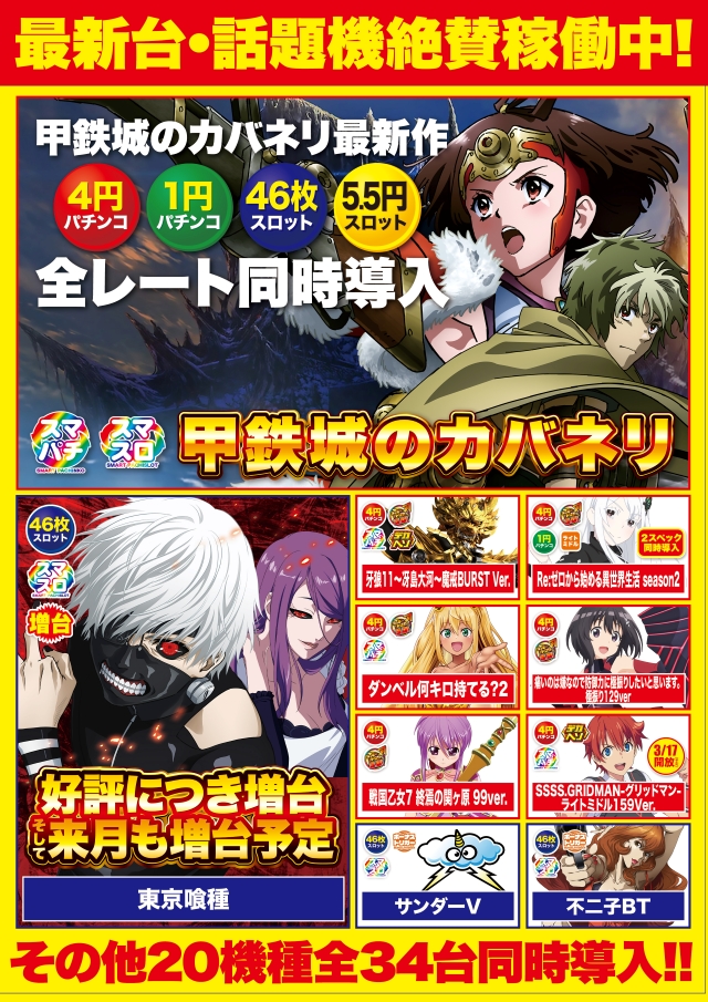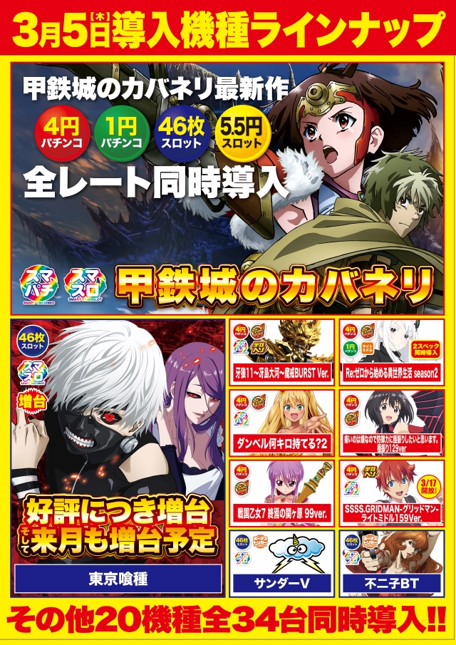 3月5日(木)大型新台入替!話題機31機種導入!