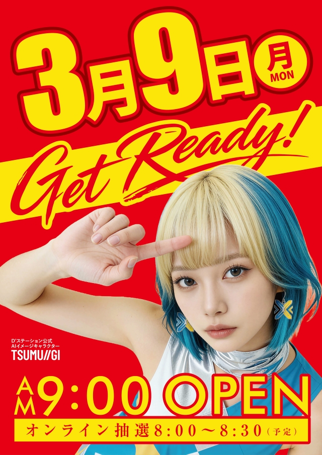 【Get Ready!】3月9日(月)午前9時オープン!!