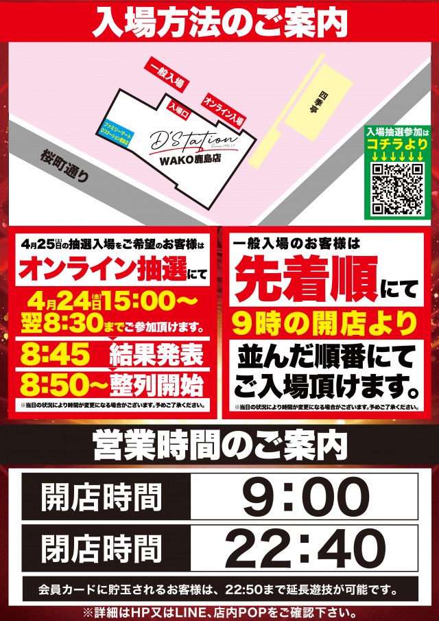 8:00~8:30の間に当店店舗駐車場にてオンライン抽選にご参加下さい。 |
