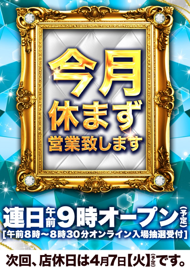 4月27日(月)今月休まず営業致します!午前9時開店!