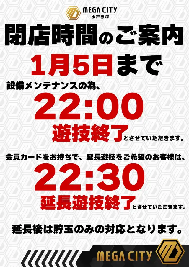 マルハンメガシティ水戸赤塚の店舗からのお知らせ