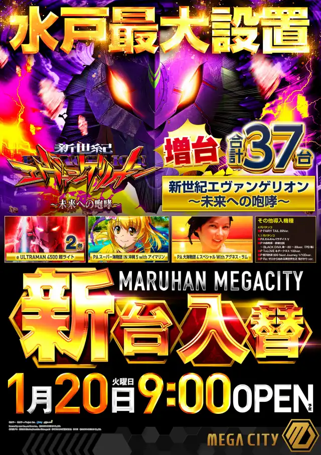 1月20日(火)新台入替!メガシティは最新台最速導入!!