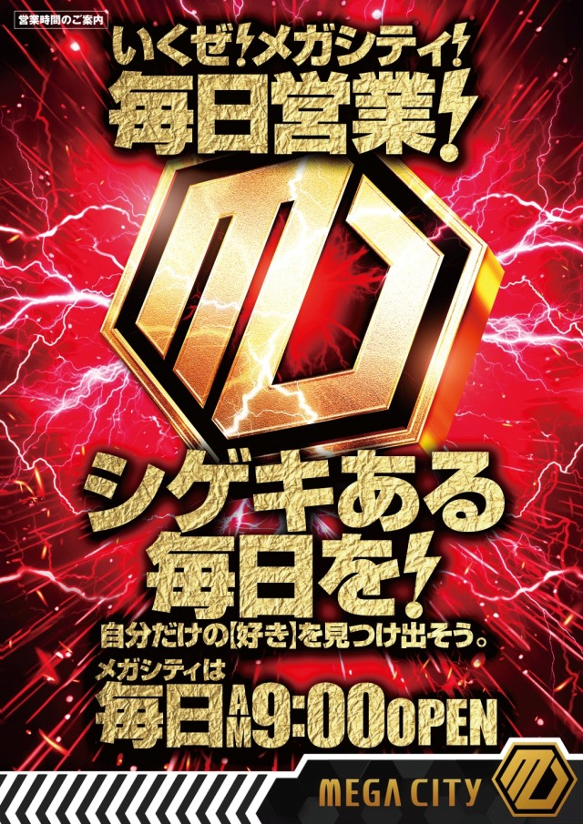 明日も!メガシティは朝9時オープン!!